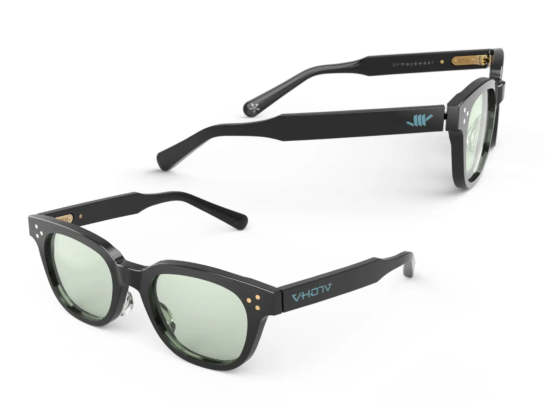 左テンプルにはアロハスピリットを象徴するVH07Vロゴ、右テンプルにはシャカサインをモチーフにしたロゴを配しています。